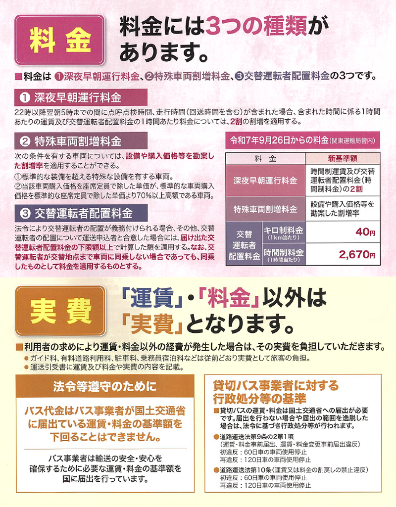 貸切バスは安全・安心な昭和観光を利用しましょう。運航違反は行政処分の対象となり、安全が確保されていません。